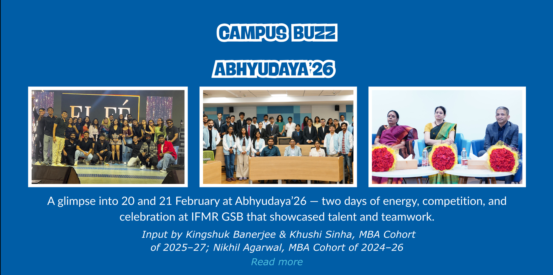 Another week at Kreaverse reminds us why higher education remains a powerful, living force. From lectures to workshops and exhibitions, the campus maintained its steady pulse of learning. In this spirit of ideas and initiative, IFMR Graduate School of Business (GSB) hosted Abhyudaya’26, two days of competition and creativity that highlighted the students’ competence and team spirit. National Science Day marked a proud scholarly milestone as the School of Interwoven Arts and Sciences (SIAS) faculty and undergraduate students launched a new Chemistry journal, deepening our commitment to research and inquiry. Conversations on career transitions and professionalism invited reflection on the link between scholarship and work. The festival of colours will soon follow, while a rich lineup of programmes promises to keep the campus vibrant and engaged.