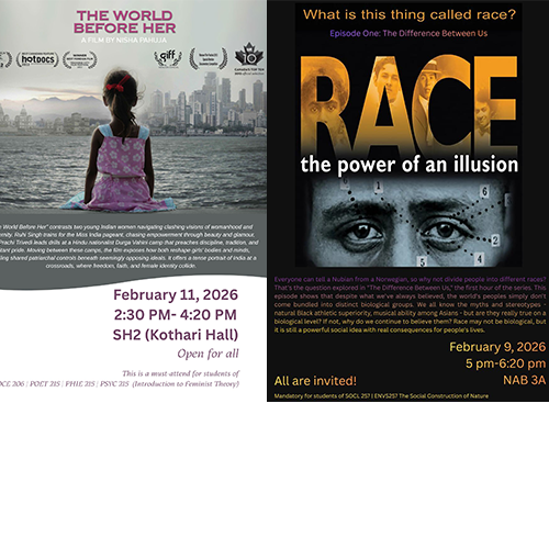 The Department of Sociology and Anthropology organised two film screenings. Race: The Power of an Illusion was screened on 9 February, followed by The World Before Her on 11 February 2026.